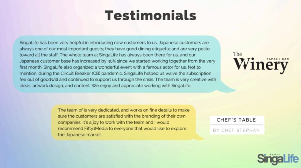 Want to reach Singapore’s Japanese community? With 10,000 copies distributed monthly to over 300 locations island-wide, SingaLife connects you directly with Japanese residents and visitors looking for trusted local businesses. Whether you’re in F&B, retail, beauty, healthcare, education, or professional services, we’d love to share your story with our readers. Drop us a line at info@fiftyonemedia.com to explore advertising opportunities — let’s connect you with a whole new audience.