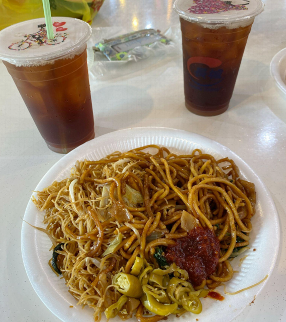 一緒に購入したのは、シンガポールで愛される定番ドリンク、アイスレモンティー。子どもも大人も大好きです。高温多湿な国での屋台飯に、束の間の涼しさをもたらしてくれますよ。