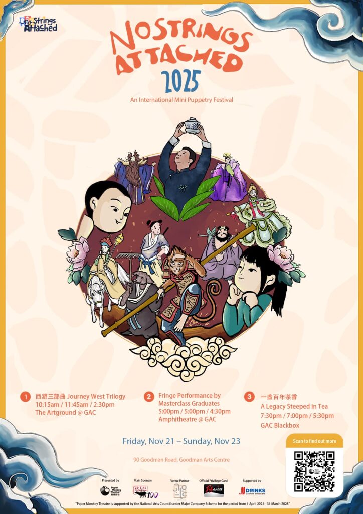 Paper Monkey Theatre が毎年主催する国際人形劇フェスティバル「No Strings Attached」は、世界各国から人形劇団やアーティストを招き、多様な人形劇の魅力をシンガポールの観客に届けるイベントです。これまでに、オーストラリア、韓国、インドネシア、マレーシア、イタリア、台湾、タイなどからの参加実績があります。
