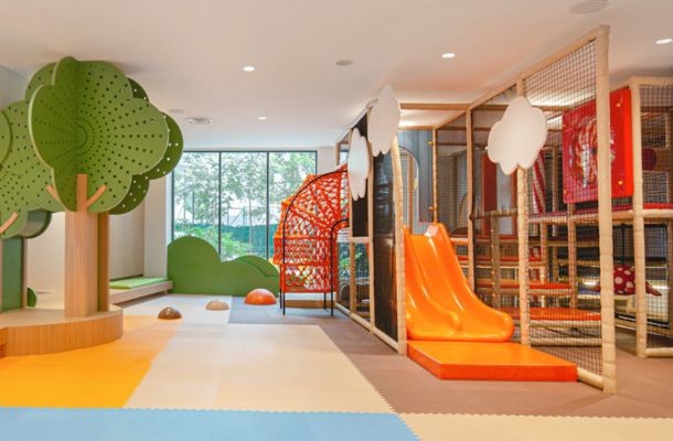 フラマ リバーフロント ホテルには屋外プールがあり、ロビーには子ども用の室内遊び場が、さらに真隣の建物には生後7か月から12歳までのお子さんを対象としたプレイグラウンドがあるという充実ぶりです。