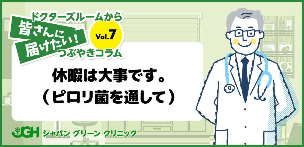 今回は、ピロリ菌の話題をきっかけに、検査の大切さ、そして「休むことがもたらす思わぬ恩恵」についてお届けします。