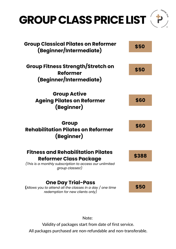 初めての方におすすめなのが「Group Rehabilitation Pilates on Reformer (Beginner)」。55分間のクラスで、料金はS$60です。