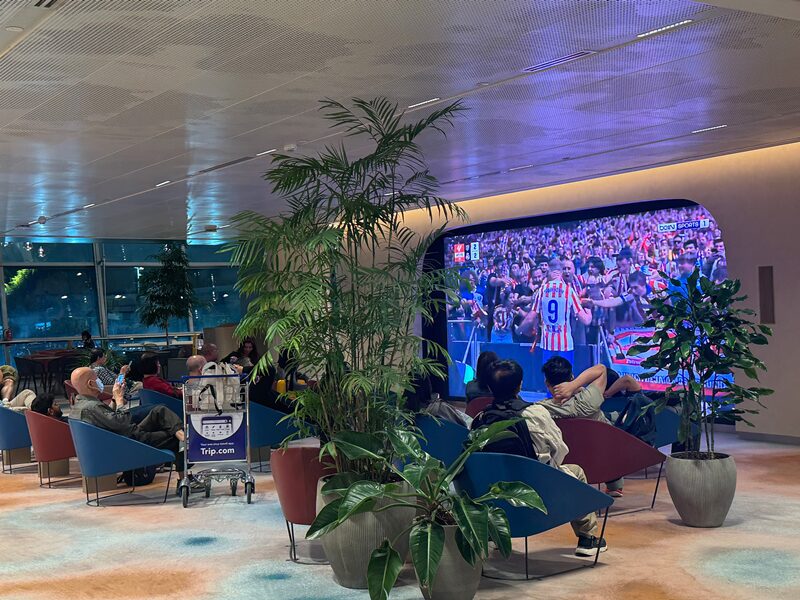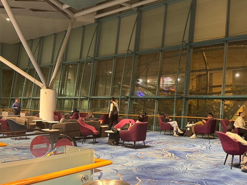 こちらのラウンジには仮眠スポットはありませんが、リラックスして座るスペースを提供しています。