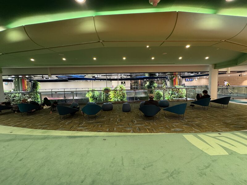 T3は天井も高く、広々とした印象です。仮眠スポット以外にあちらこちらに休憩できそうな場所があります。好みの場所を探すのもおすすめ。