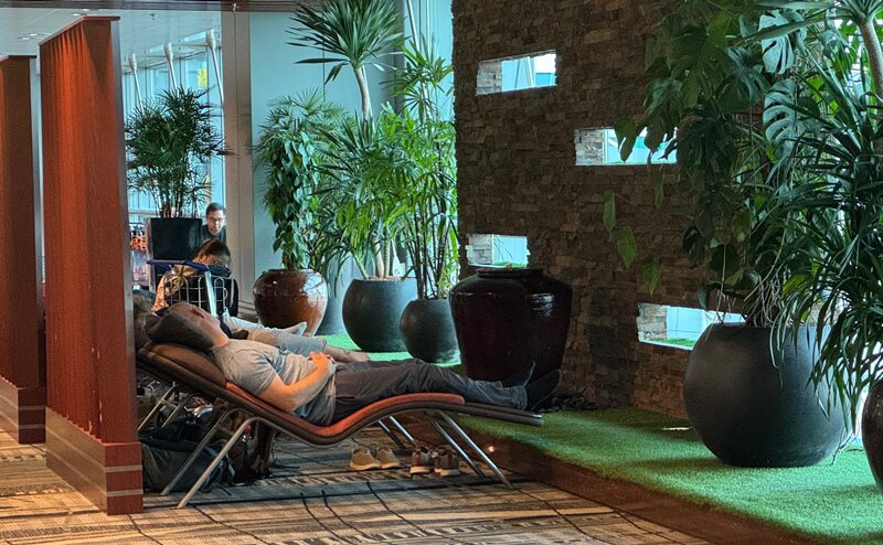 より快適に仮眠するなら、やはり有料ラウンジに軍配があがりますが、世界で一番とも評価されるチャンギ国際空港。無料で使える場所でもかなりリラックスして休めます。