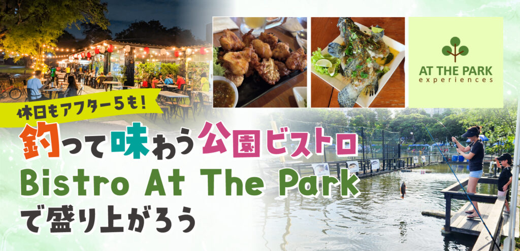 さまざまな遊具や散歩、ランニングコース、そして他の公園にはない魚釣り施設もあり!釣ったらそこで捌いて即実食!そんな楽しさ満点のアクティビティが可能なBistro At The Parkは、シンガポール唯一のミニリゾート気分が楽しめるビストロです!