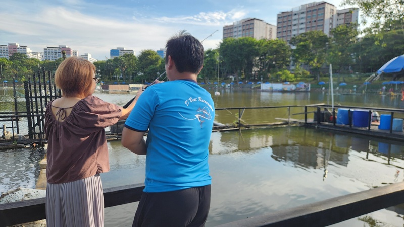 もう1人のSingaLifeスタッフもゲット!そして今度は違う魚がいいからと違う池にチャレンジしたSingaLifeスタッフは、何度やっても食い逃げされてしまう結果に…。