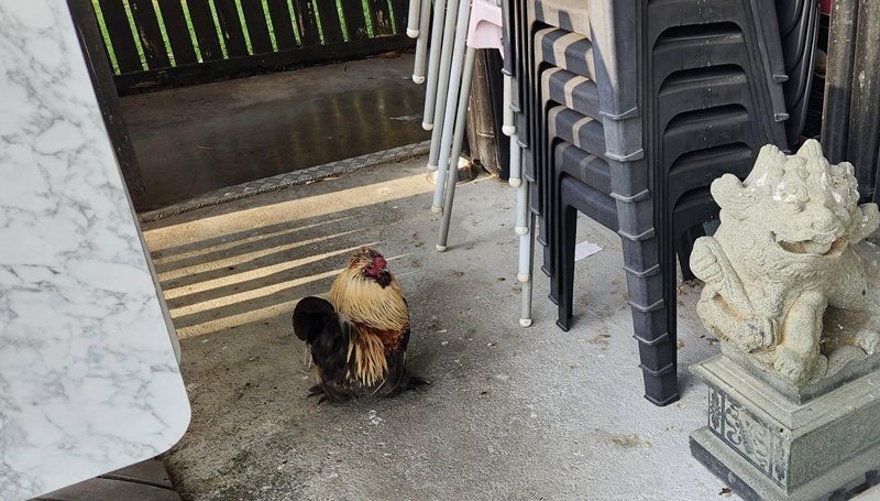 こちらはシンガポールのあちこちで見る野生の鶏と違い、Bistro At The Parkで飼っているアイドルスタッフ。人慣れしており、かわいい!
