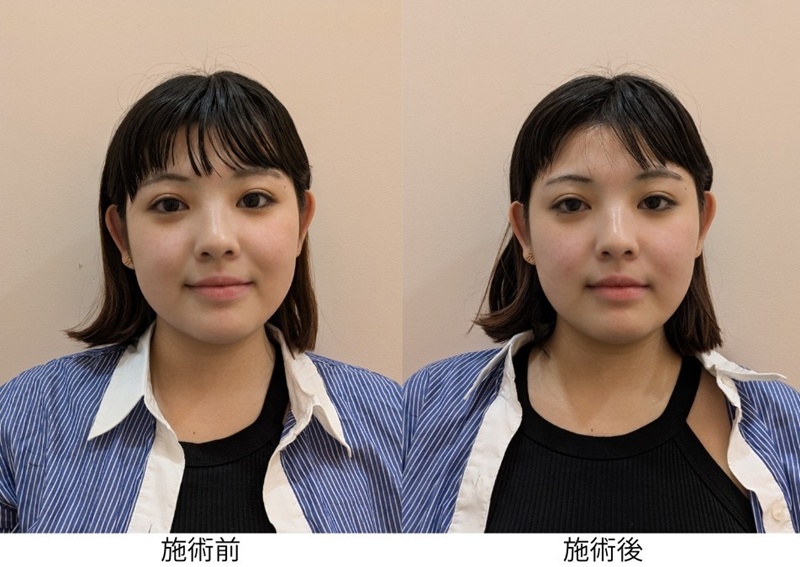 写真では伝わりにくいかもしれませんが、施術後は顔まわりが一気に引き締まったような印象がありました。特に翌朝にその変化が強く感じられました。