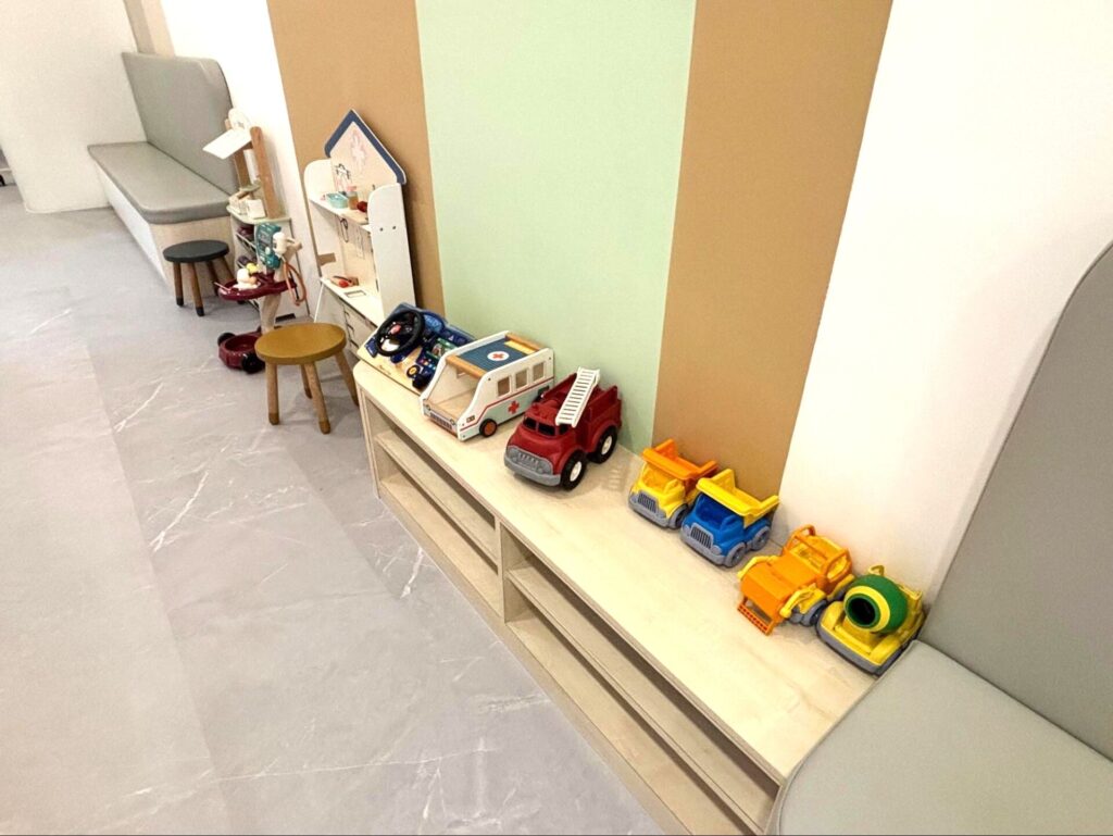 待合スペースや診察室には絵本やおもちゃが置かれ、お子様が退屈せずに過ごせる工夫がされています。おもちゃで遊べるのが楽しみで、病院に来院されるお子様もいらっしゃるそうです!