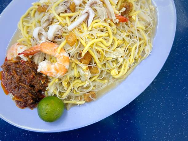 ミーシアムは、スパイシーな酸味のあるスープに細い米粉麺が入った麺料理です。通常、エビや豆腐がトッピングされ、シンガポールの多くのホーカーで楽しめます