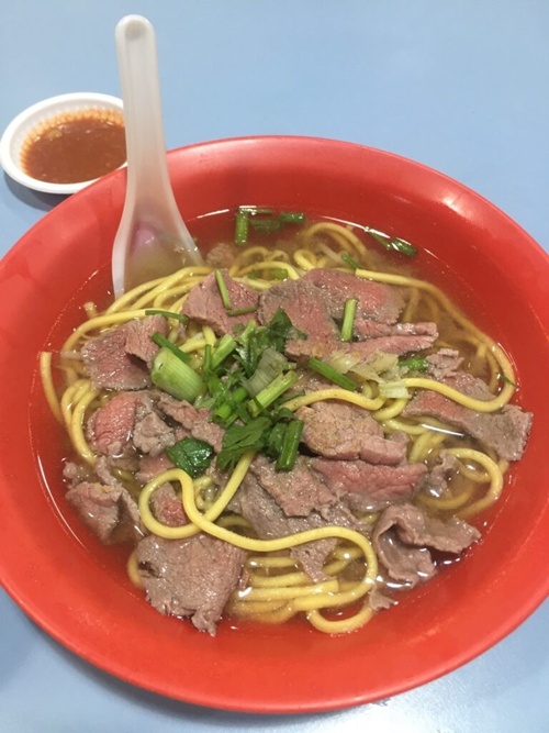 ビーフヌードルは、シンガポールの多くのホーカーで楽しむことができ、お店によっては米粉麺を用いることも。