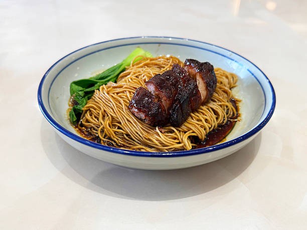 ワンタン ミーは、ホーカーやフードコートでよく見る定番の麺料理です。ワンタンヌードルとも呼ばれ、黄色い細麺とワンタンが特徴で、チャーシューやローストポークのトッピングを追加してこの極細麺と一緒に食べるのがおすすめです。