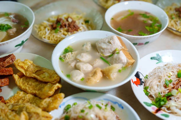 クリスピーな食感の魚の皮を揚げたものや、香ばしい肉団子、ホルモンなどが入っていて、ファンの多い料理のひとつ。有名店としては、ミシュラン獲得のHill Street Tai Hwa Pork NoodleやFamous Eunos Bak Chor Meeがあります。