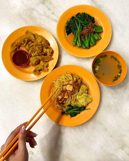 また、Hua Kee Hougang Famous Wanton Mee(華記后港祖傳馳名雲吞麵)ではフライドワンタンがトッピングされたワンタンヌードルも楽しめます。こちらも2018年、2021年にミシュラン獲得のホーカー人気店の一つです。