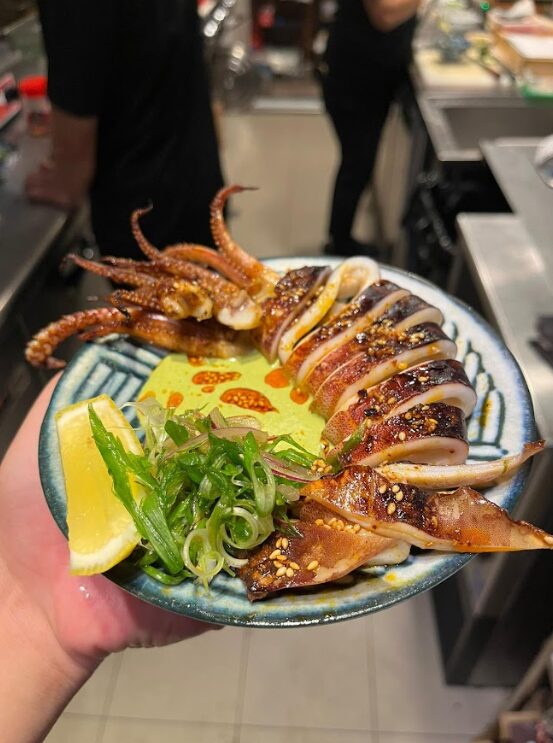 石川県産のスルメイカをまるごと焼き上げた、豪快で香ばしい一品。外は香ばしく、中はもちっとした食感が残る仕上がり。シェアしやすいサイズなので、まずは一皿頼んで日本酒を合わせるのが◎。