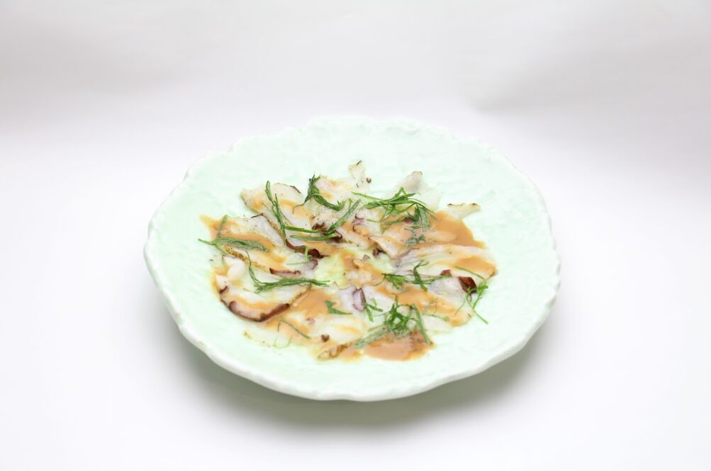 海胆ソースの和風たこカルパッチョ (Tako Carpaccio, with Wafu Uni sauce)