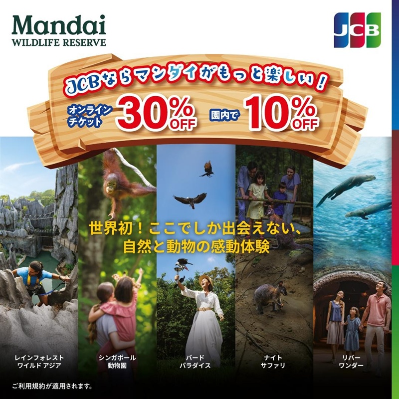 ❖ナイトサファリで有名な「マンダイ ワイルドライフ リザーブ」のシングルパークの入場券、JCBカードを利用して公式サイトからオンラインで購入すると 入場券が30%オフ。