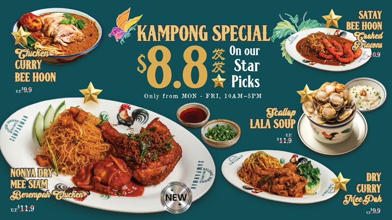 懐かしくて、どこかほっとする味わいのカンポンスタイルのメニューが、今だけ S$8.80!(通常最大S$11.90)