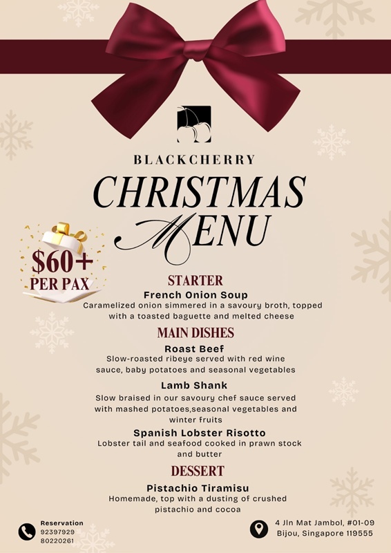 | 🏡住所:4 Jln Mat Jambol, #01-08/09, S119555 🚉最寄り駅:Pasir Panjang 駅 🕚営業時間:月〜金 11:30-22:00、土日 11:00-22:00 📅定休日:無 📞電話番号:6957 5567 / 9239 7929 / 8022 0261 📤E-mail:blackcherrysg@gmail.com |