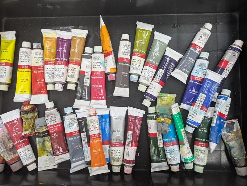 画材はオイル、アクリル、水性があり、自分が表現したい色味や雰囲気に合わせて自由に選択できます。