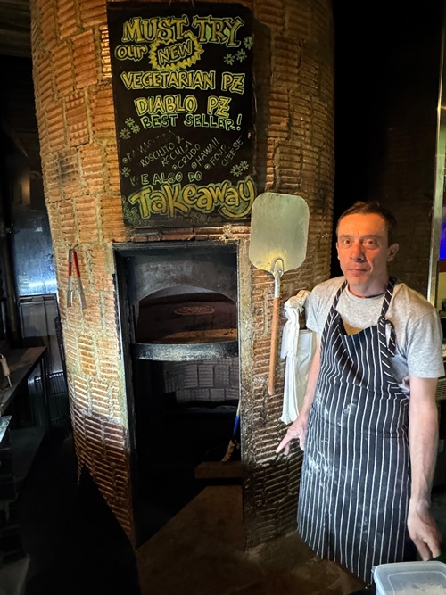 ここで大型ピザ窯についてご紹介します。これこそHannibal Singaporeのパーティメニューで、大人数で集まると必ずオーダーされるピザ、1mピザが生まれたきっかけ。Draganさんが試行錯誤を重ねて、約1.5mの横幅で作られ、強い火力でカリッと焼けるようになっています。