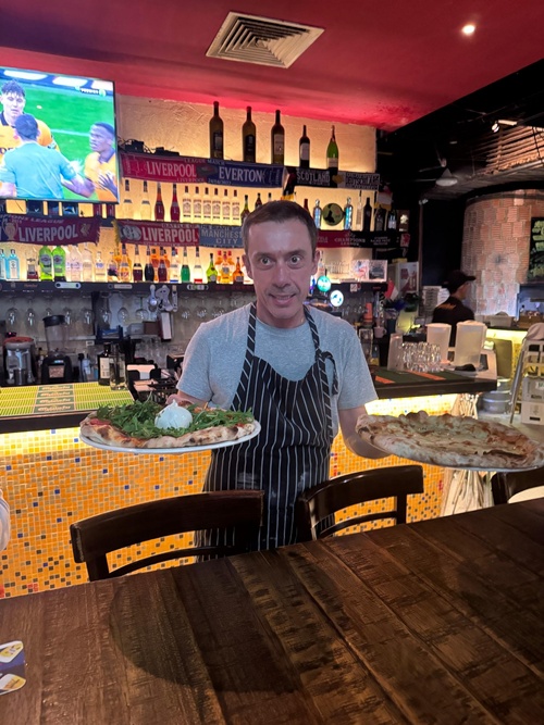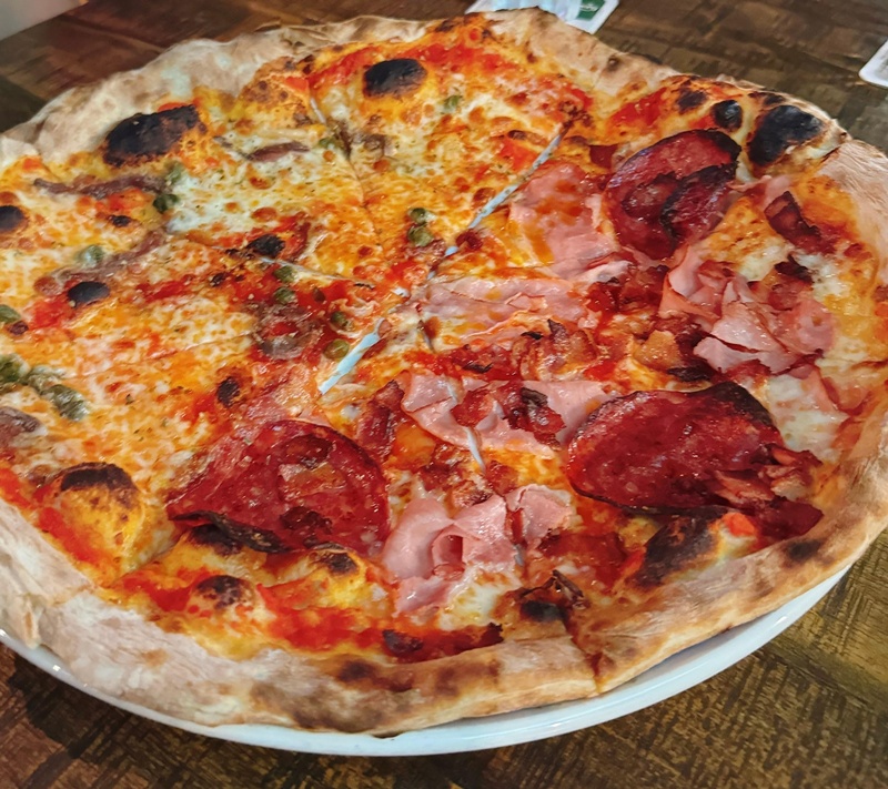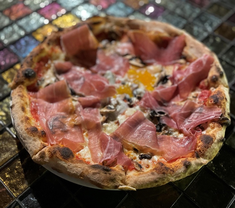先ほど、Mauroシェフが手ずから作ってくれた2種類のトッピングのピザ。人気のNAPOLETANA(トマトベースにモッツァレラチーズ、ケッパーとアンチョビ)とMEAT LOVER(同じくトマトベースにモッツァレラチーズ、ハムにサラミ、ベーコン、チリオイル)と賑やかなトッピングです。