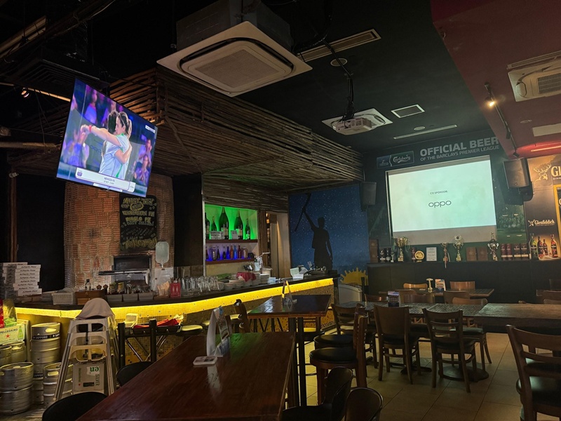 スポーツバーの名に恥じぬように、Hannibal Singaporeには大型スクリーンがいくつも設置されており、どの場所からでも見やすくなっています。