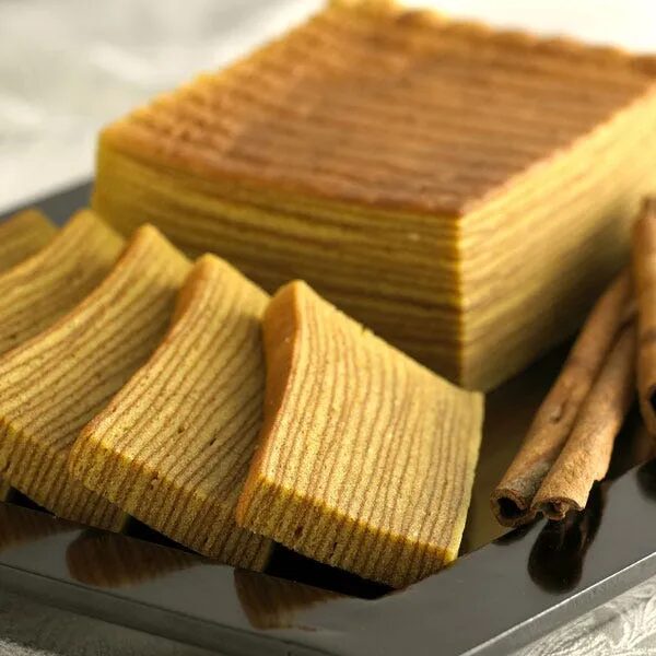 マラッカのお菓子を意味する 「Nyonya kuih(ニョニャ クエ)」 は、ココナッツミルクと米粉を使った素朴な味わいが魅力です。その代表格が 「クエ ラピス」です。層が重なるストライプ模様が特徴で、甘さは控えめで、幅広い世代に親しまれています。