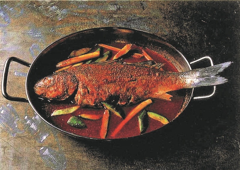 Ikan Assam Pedas(イカン アッサム ペダス)は「酸っぱくて辛い魚」という意味。レモングラス、ガランガル、エビペーストを使ったスパイシーなチリスープで魚を煮込み、タマリンドペーストの酸味がアクセントになっています。オクラ、ナス、トマト、白キャベツなどの野菜を加えることで、より風味豊かな料理に仕上がります。