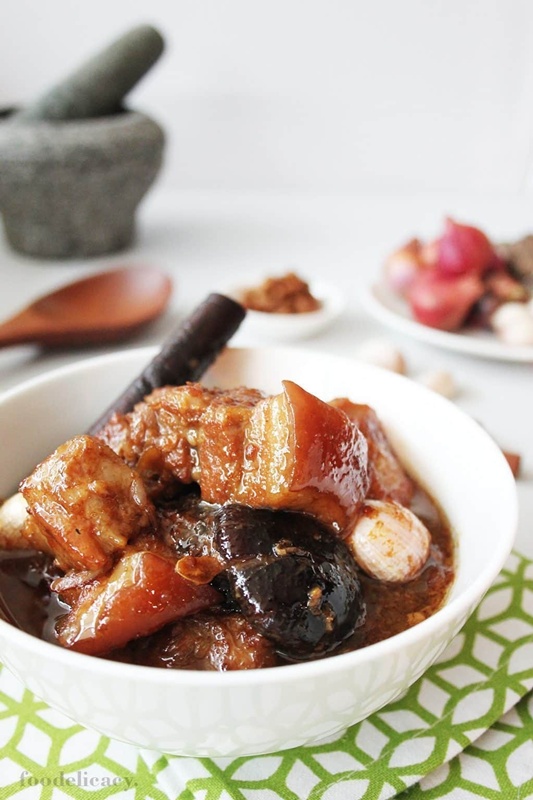 Babi pongteh(バビ ポンテ)は、発酵した醤油で豚肉を煮込んだ料理です。シナモンや八角などのスパイスが用いられるのが特徴。日常の家庭的な料理としても親しまれていますが、プラナカンの中国人の間では、宴会や特別な場で振る舞われる豪華な料理としても知られています。