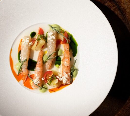 新鮮な生のアルゼンチン産のエビを塩、レモンやオリーブオイルなどで味付けした、イタリア料理のクルードをアレンジ。ここで使われている生姜とパイナップルのビネガーシロップは自家製。ぜひ販売してほしいくらいの味わいです。エビ自体に甘みがあり、ソースとの相性もばっちり。