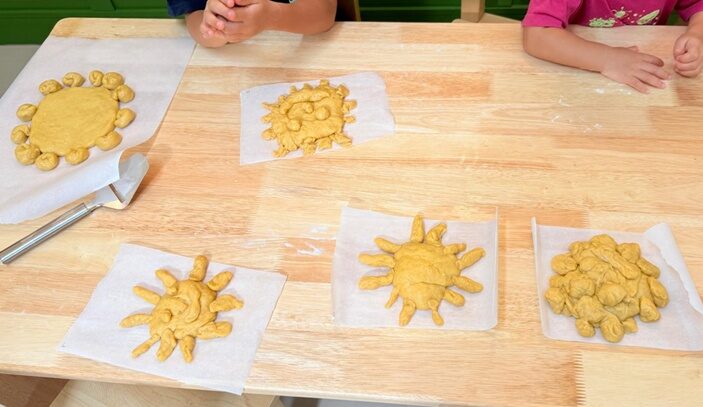 | ▪ブロック遊び→幾何学、協力、問題解決の学び ▪パン作り→手先の巧緻性、計測や順序などの数学的概念の体感 ▪文字練習や構造化された学習→年長児には小学校へのスムーズな移行をサポート |