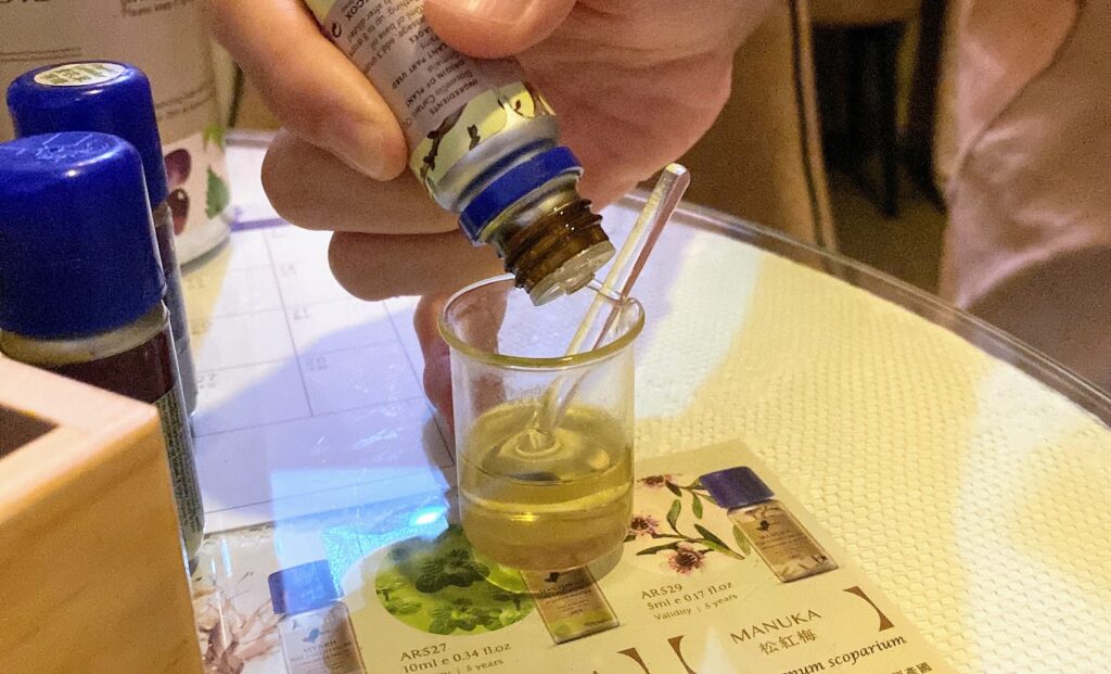 複数回通っていただくことで、香りやアロマオイルの成分との相性もその方に応じたカスタマイズもできるとのこと。好みや悩みに応じたカスタマイズはドリーンさんの長年の経験によるものです。