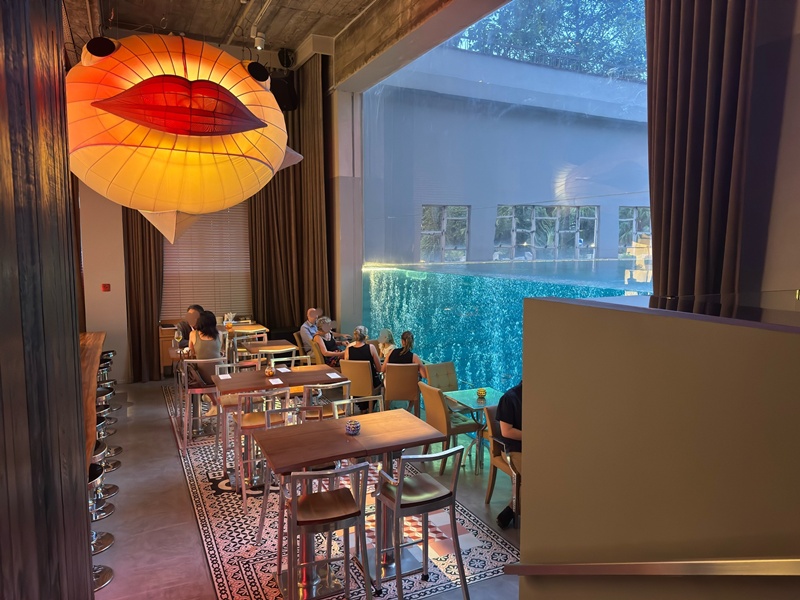 店内はコンパクトで、プールに向かってテーブルが数卓、ソファー席、カウンター席があります。どの席からもショータイムを臨場感を持って見れる距離です。インテリアは華やかながらもリラックスできる雰囲気。
