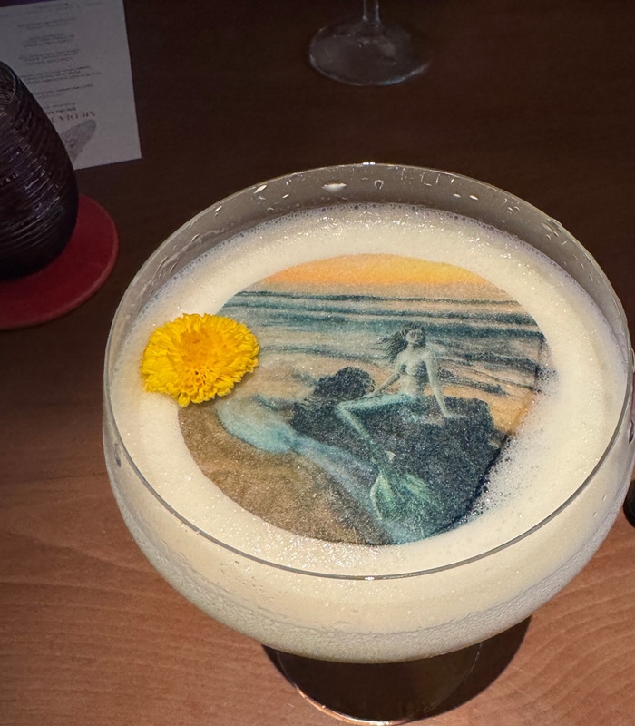 まずはマーメイドのプリントが浮かび上がるカクテルで乾杯。