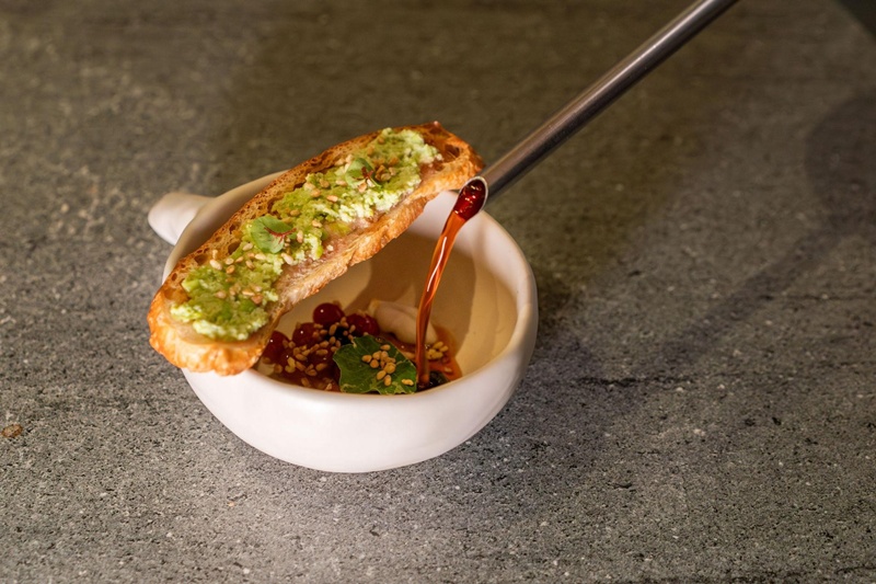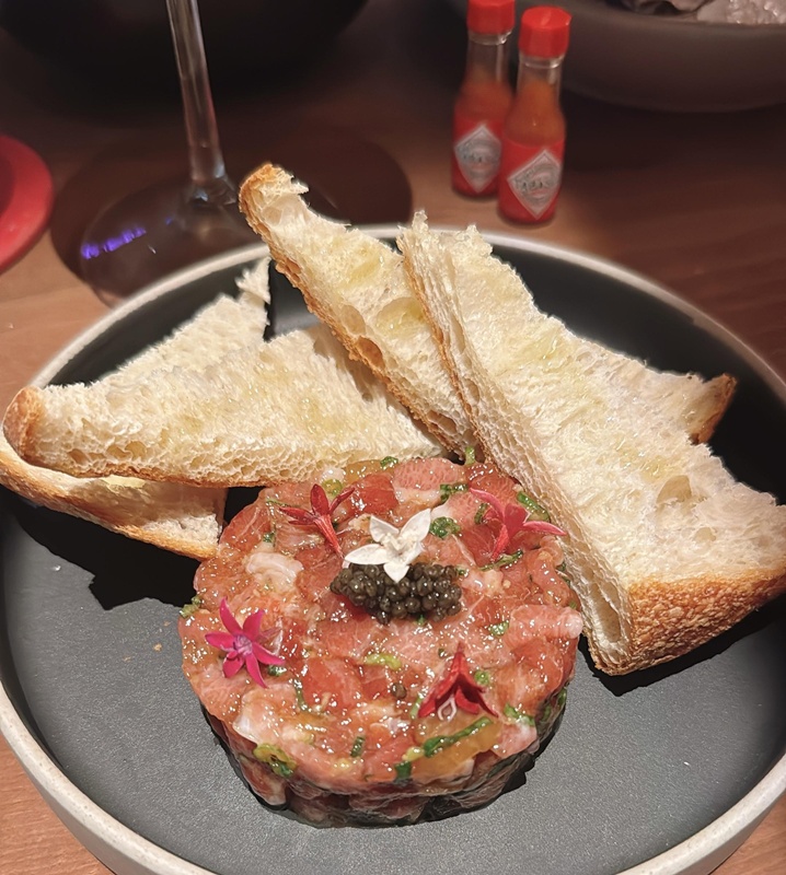 こちらはたくあんとカルーガキャビアがアクセントになっており、新鮮なマグロを胡麻醤油のビネグレットで味付け。バゲットに載せて食べるとよりおいしいです。
