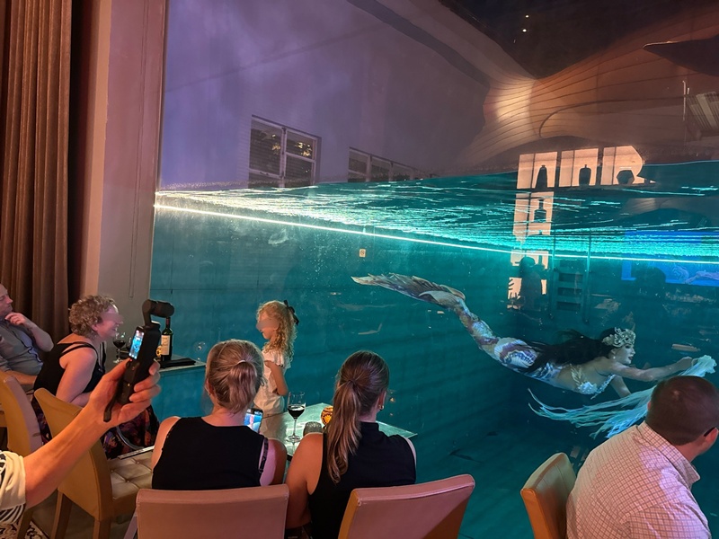 今回体験して驚いたのは、体験型レストランは想像以上に没入して楽しめるということでした。そしてSyrenaさんのショー後、記念撮影をした女の子の上気した表情が忘れられません。今、彼女の夢はマーメイドになることでは、と思うほど。