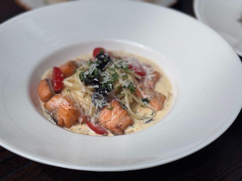 クリーミーなソースはパスタやサーモンにしっかり絡み、口の中で一体感が生まれる仕上がり。味付けは濃すぎないので、大人はもちろん、お子さまにも食べやすい一皿だと感じました。