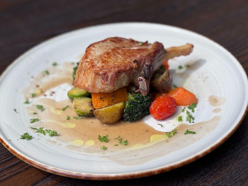 シェフによると、肉の表面は揚げるように調理しているとのこと。その製法により、外側はカリッと香ばしく、中はしっとりとした食感の違いを生み出しています。豚肉とは思えないほどの、柔らかさ、ジューシーさが際立つ料理でした。