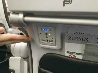 ZIPAIRの座席にはモニターがない代わりに、タブレット端末を置くことができるスペースがあります。長時間のフライトでもご自身のタブレットで動画を楽しむことができます。