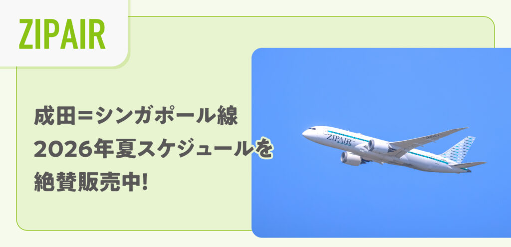 ZIPAIRが設立されたのは、2018年7月で、営業を開始したのは2020年6月。日系の航空会社である日本航空(JAL)の100%子会社で、これまでのLCCとは異なる新形態の価格やサービスを提供しています。シンガポールはZIPAIRにとって、4番目の就航都市です。