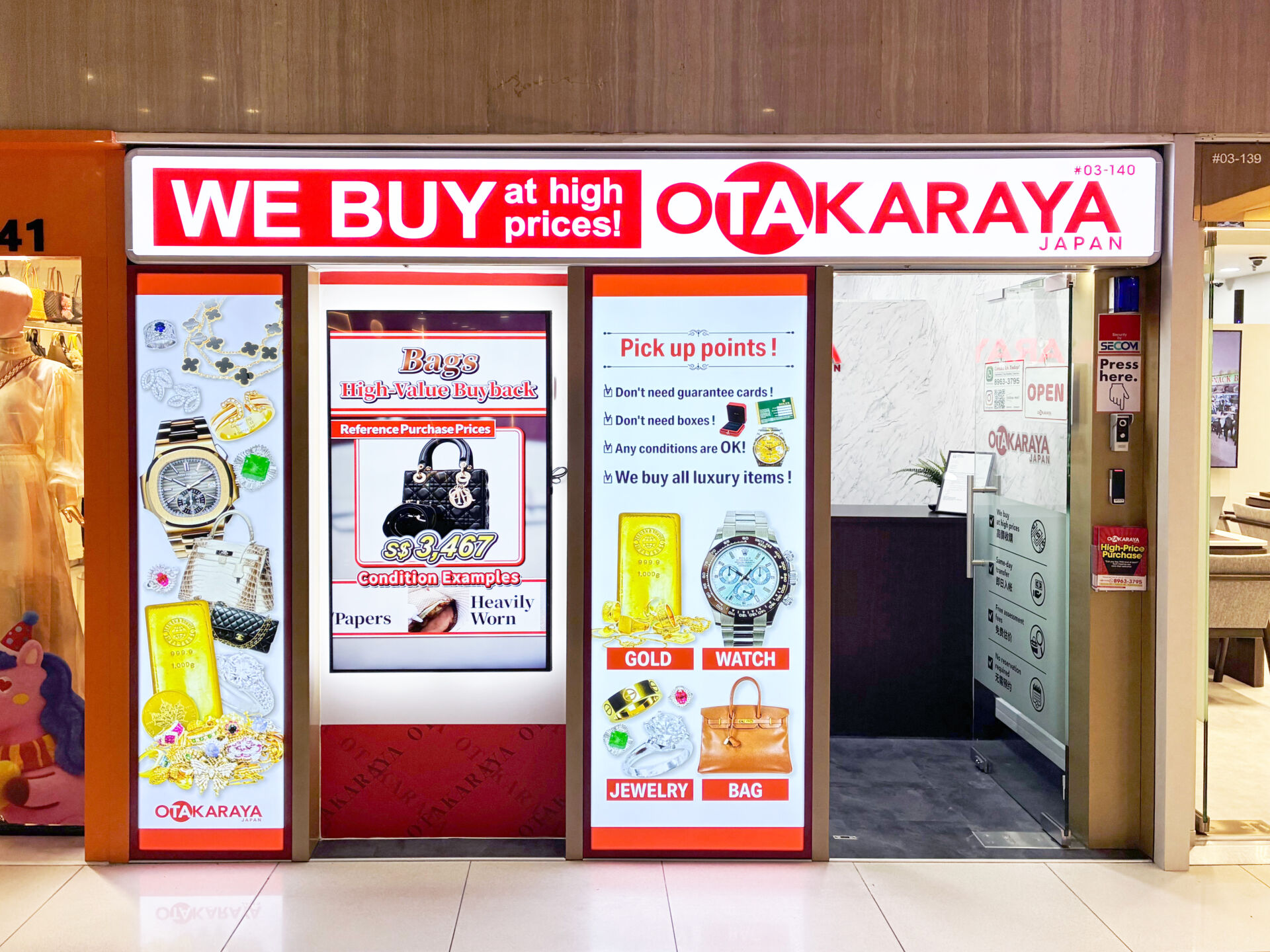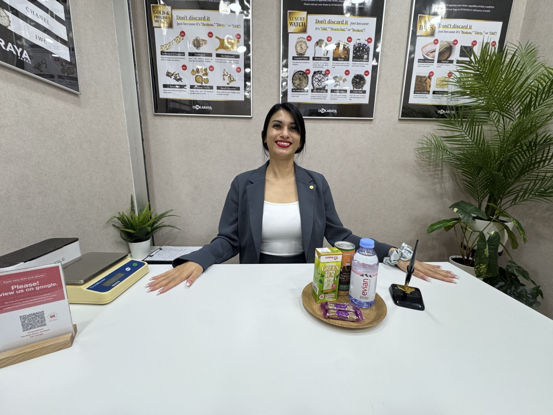 海外での買取は不安がつきものですが、シンガポールの店舗には日本人駐在員2名と、日本人レセプショニストが常駐しています。言葉の壁を気にせず、日本語で細やかな相談ができるのは大きな魅力です。