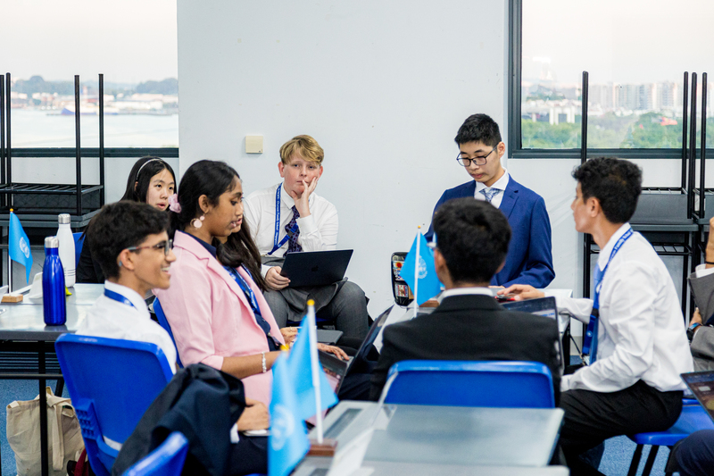 「模擬国連」:世界中の仲間とリーダーシップや論理的思考力などを養います。