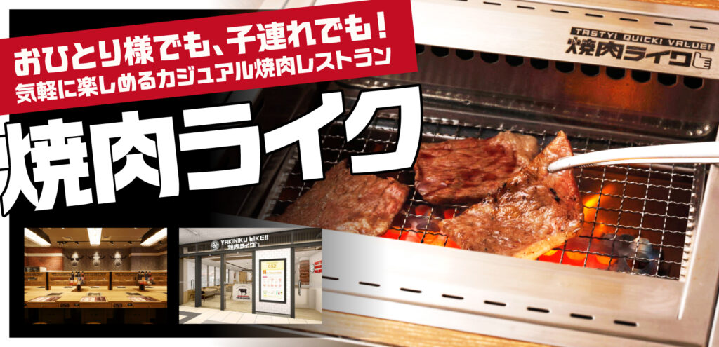 焼肉ライクは、日本発の「一人焼肉」をコンセプトにした焼肉チェーン。「TASTY!QUICK!VALUE!」を掲げ、上質なお肉を手頃な価格で、しかもスピーディーに楽しめます。