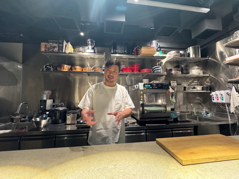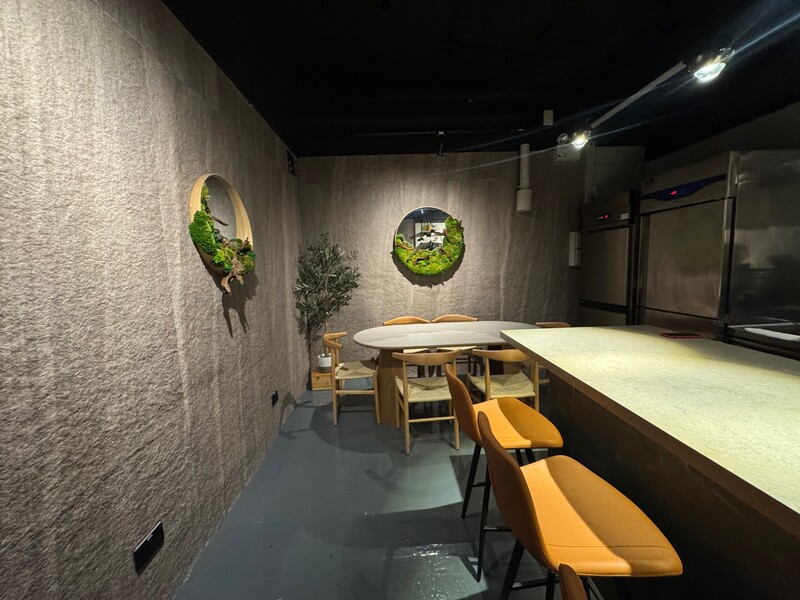 精肉店ダイニングより、こだわりのメニューを味わいたい方。例えば精肉店ダイニングのテーブルは低いので、それに合わせた調理法をおすすめするというJustinさん。このプライベートダイニングでは、より多彩な調理法で提供することが可能となります。Justinさんのエクスペリメンタルキッチンでもあります。