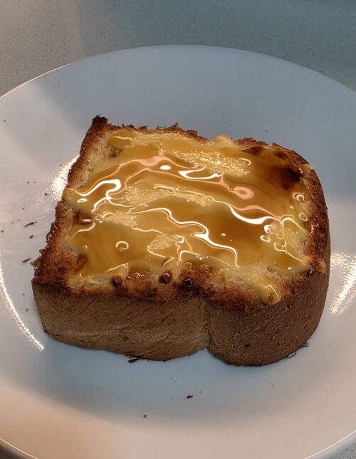 付属の説明書には、チーズトーストにははちみつや黒胡椒を合わせるのがおすすめと書かれていたので、今回ははちみつをかけてみました。