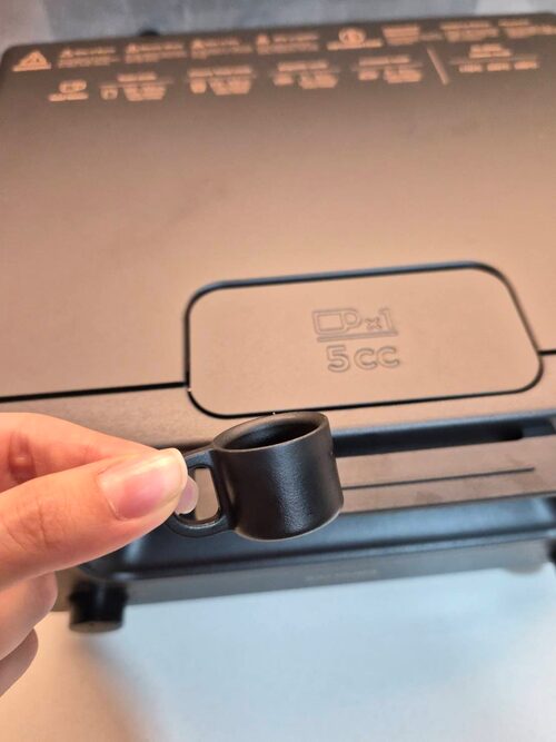 この可愛らしいミニカップは、水を給水口に入れるためのものです。使用前に、本体上部の給水口へ少量の水を注ぎます。