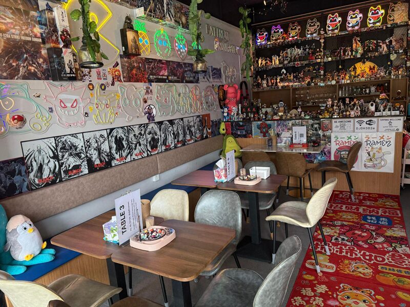 日本のアニメやゲームをモチーフにした活気ある装飾に囲まれながら、テーブルゲームを楽しみ、遊び心あふれる雰囲気の中で、ここでしか味わえない料理を堪能!