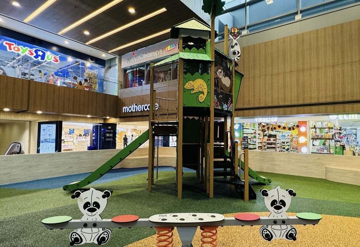 オーチャードロードにあるパラゴンショッピングセンターには、5階にちょっとした遊び場があります。ベビーやキッズ用品の揃うフロアなので買い物帰りに気軽に立ち寄れるスペース。すべり台やキャラクターの乗り物などで幼児が気分転換するのにぴったりな場所です。